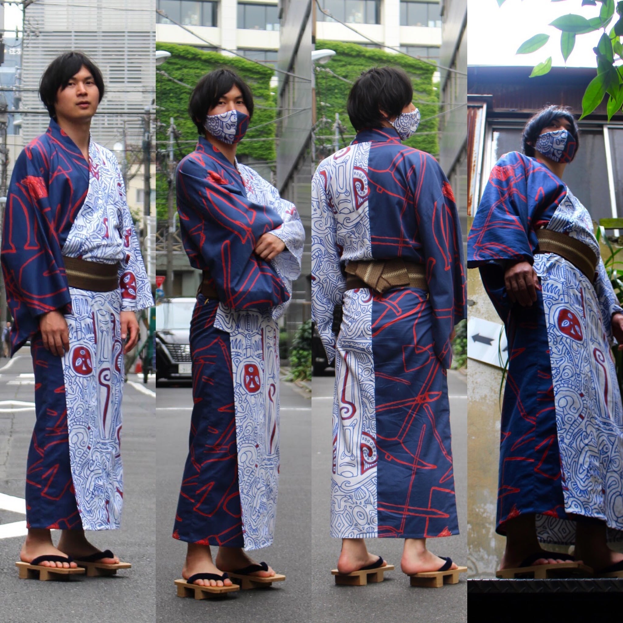 ご注文頂いてからオリジナルの柄を作成します。写真は過去にデザインさせて頂いた柄の一部です。こちらは写真と同じように、2つの柄のデザインで左右対称の浴衣になります。
