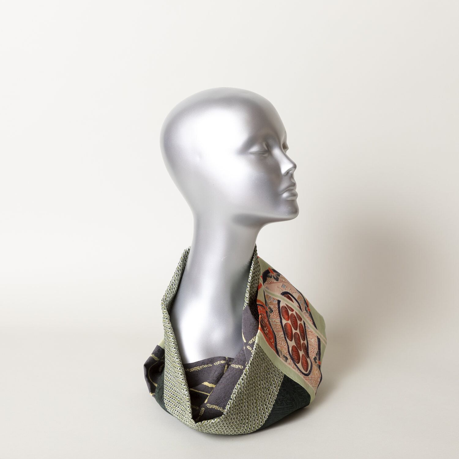 Snood made by upcycled from shibori, komon, and antique an child's kimono.