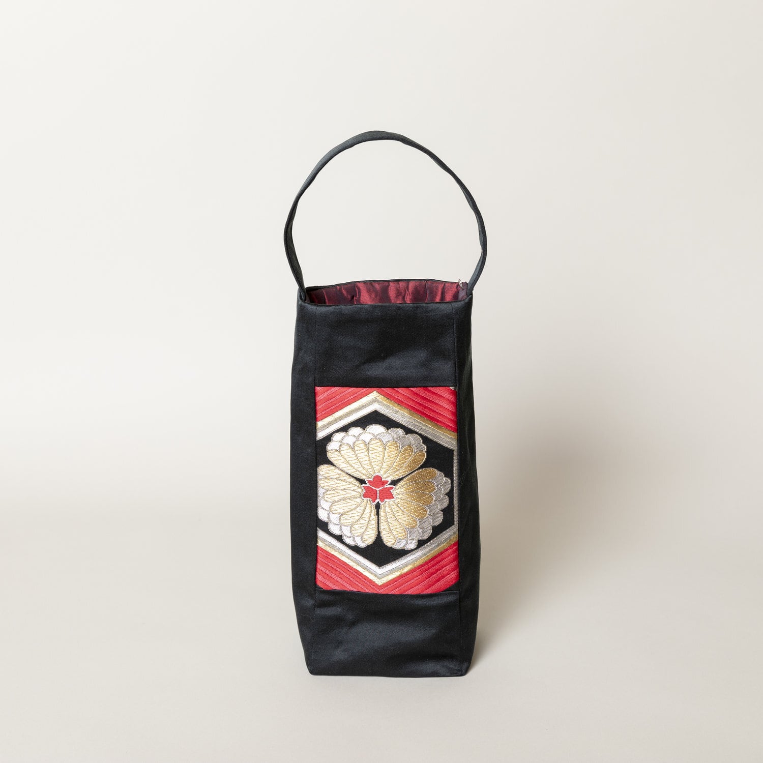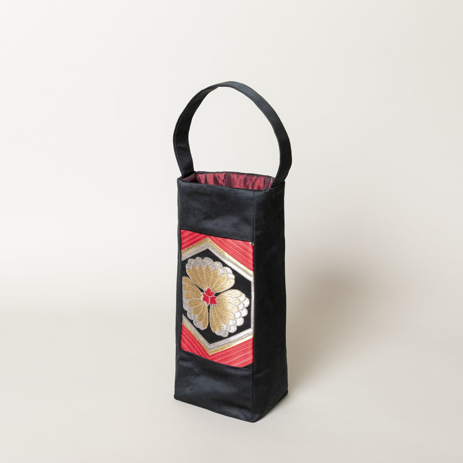 帯をアップサイクルして制作したワイン(お酒)バッグ。