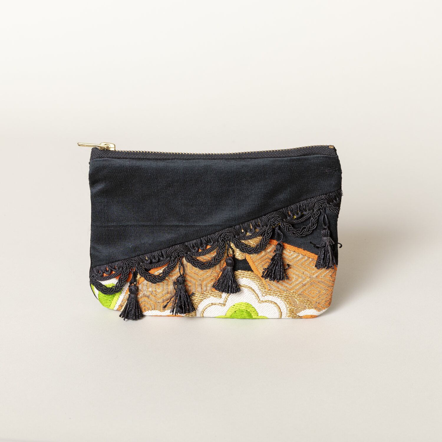 Made by upcycling two vintage obis and combining them with British fringing.