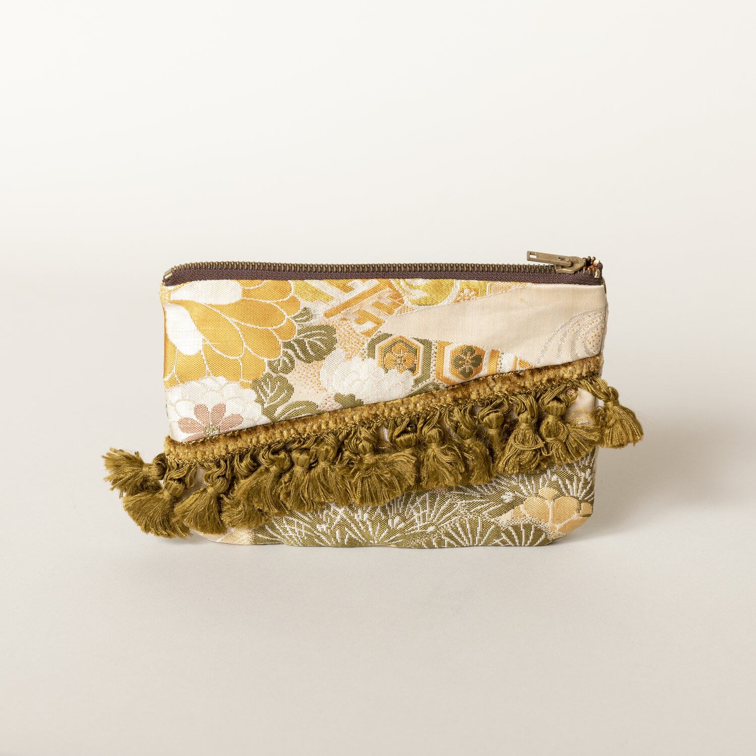 アンティークの丸帯をアップサイクルし、イギリスのブレードと組み合わせて制作。