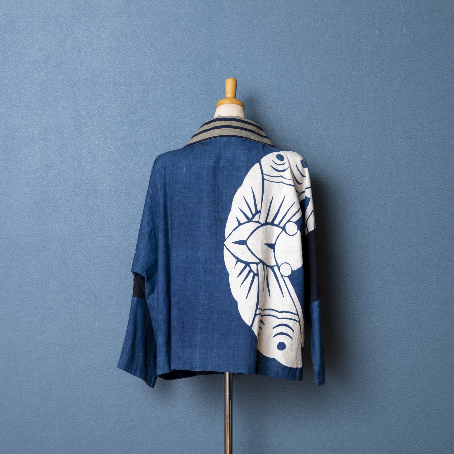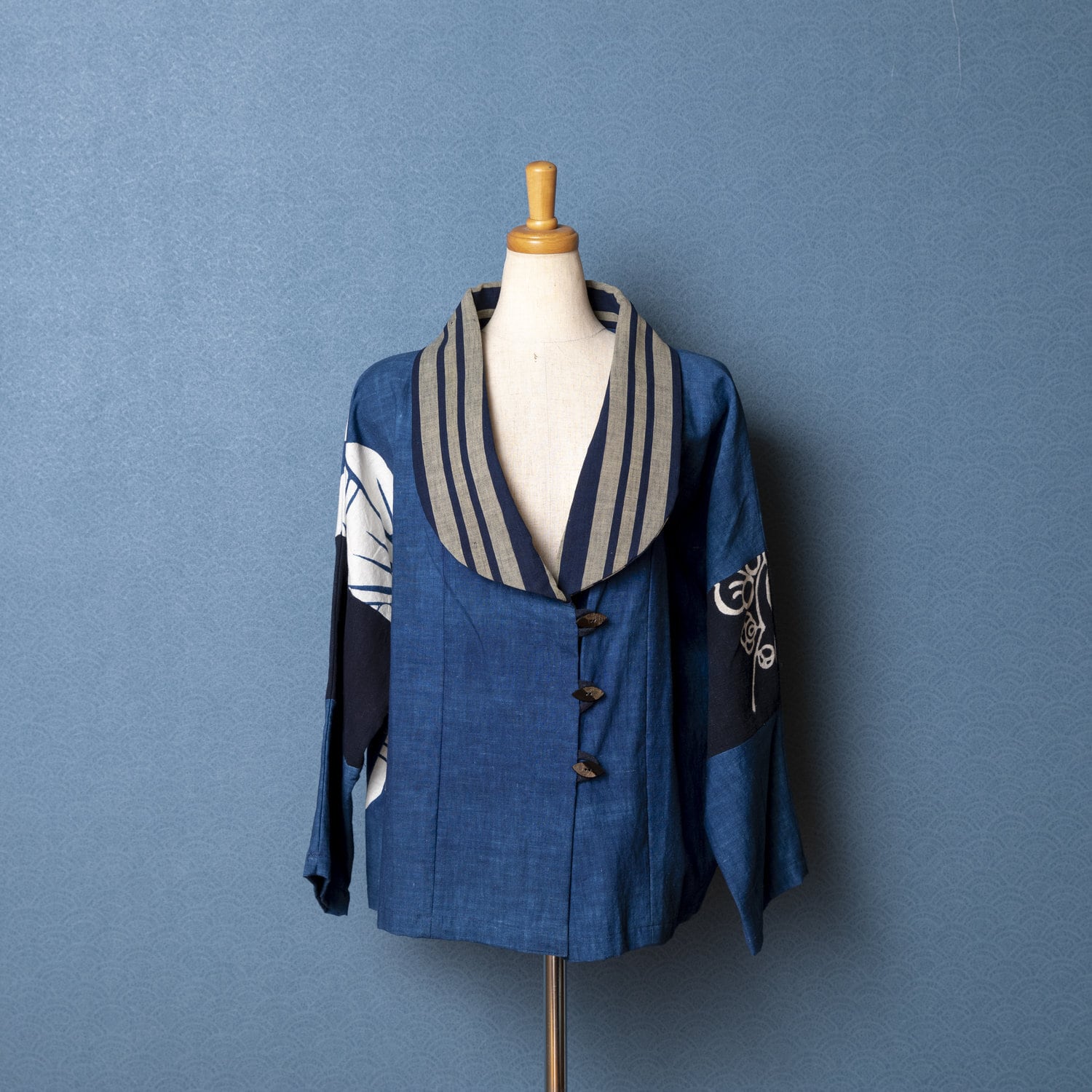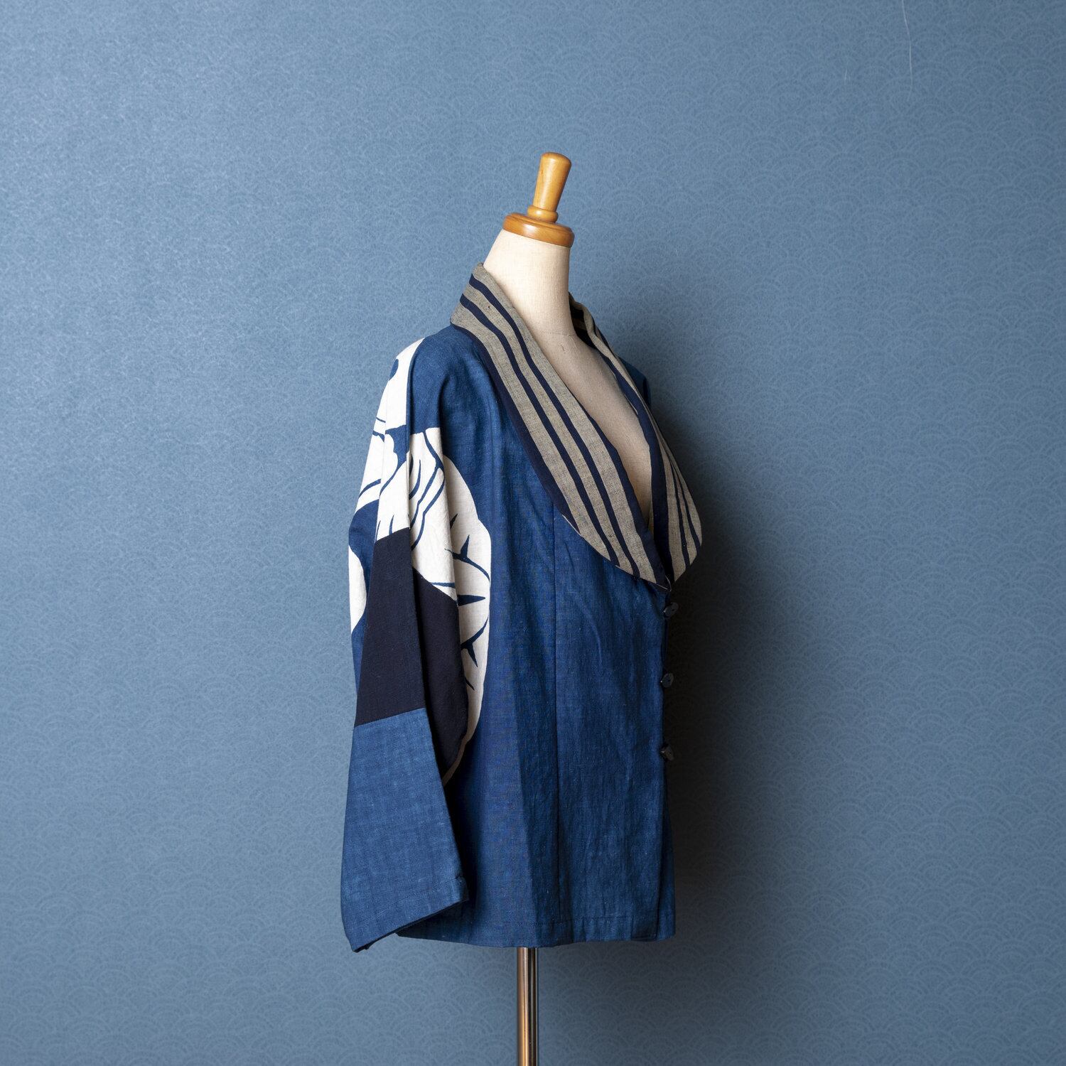 アンティークの風呂敷をいくつか組み合わせてアップサイクルしています。