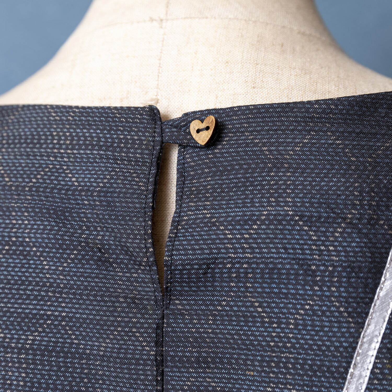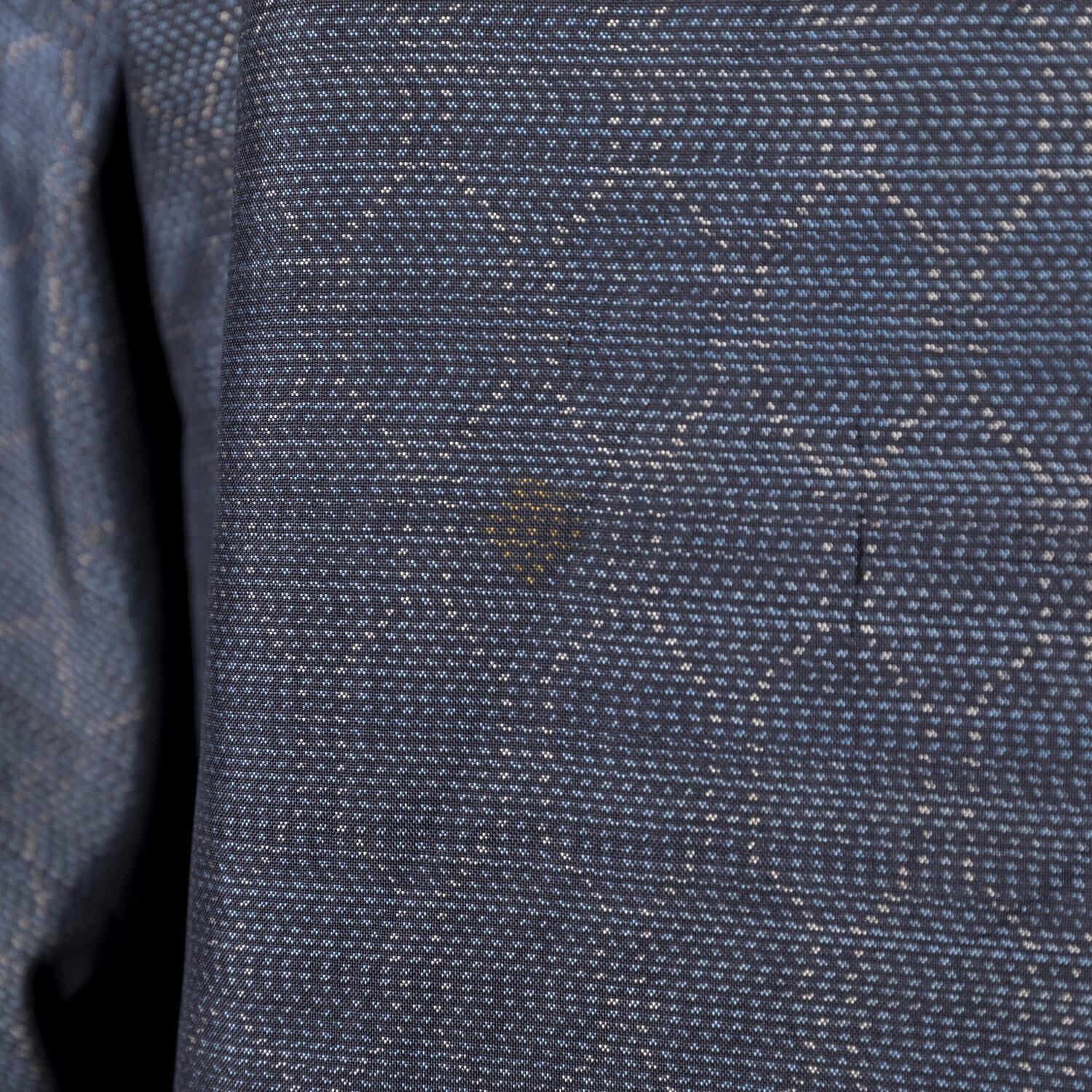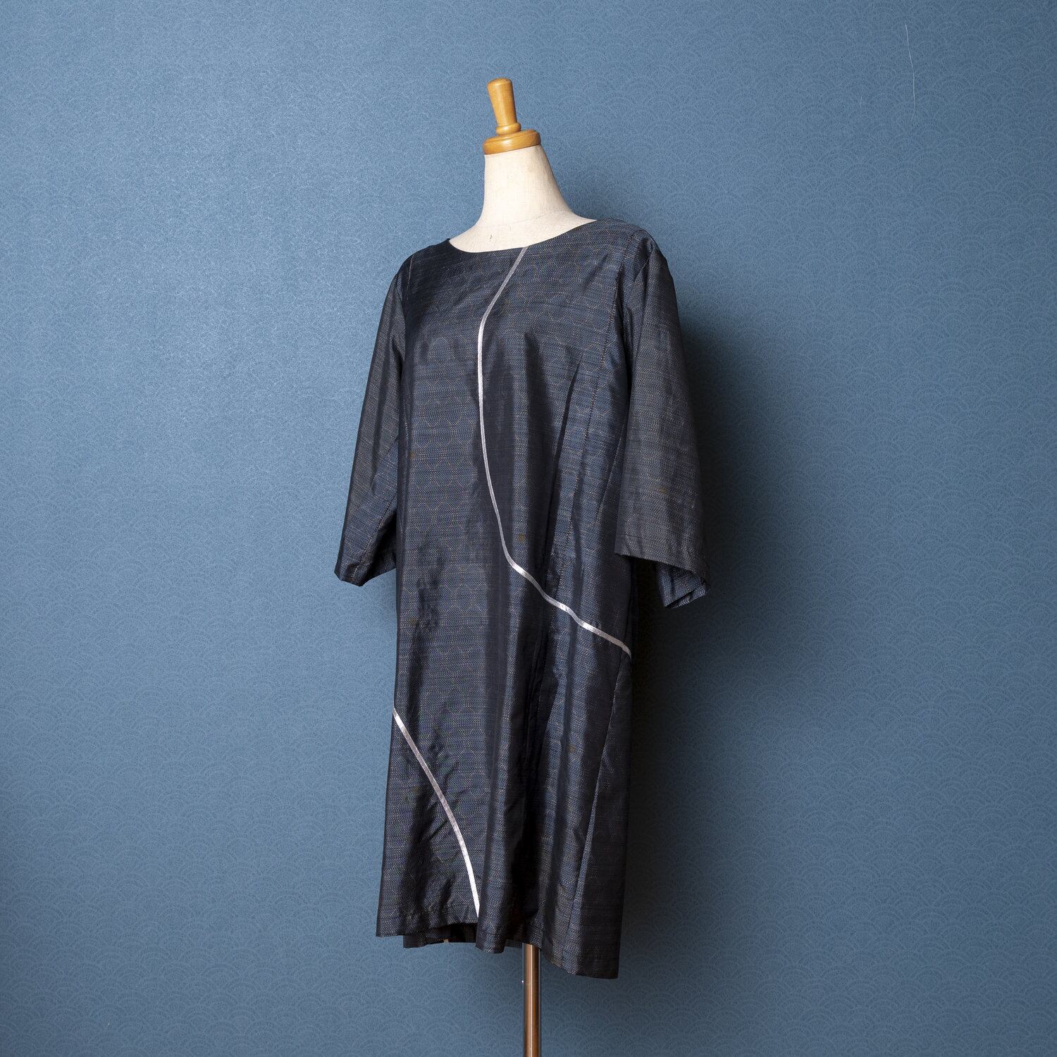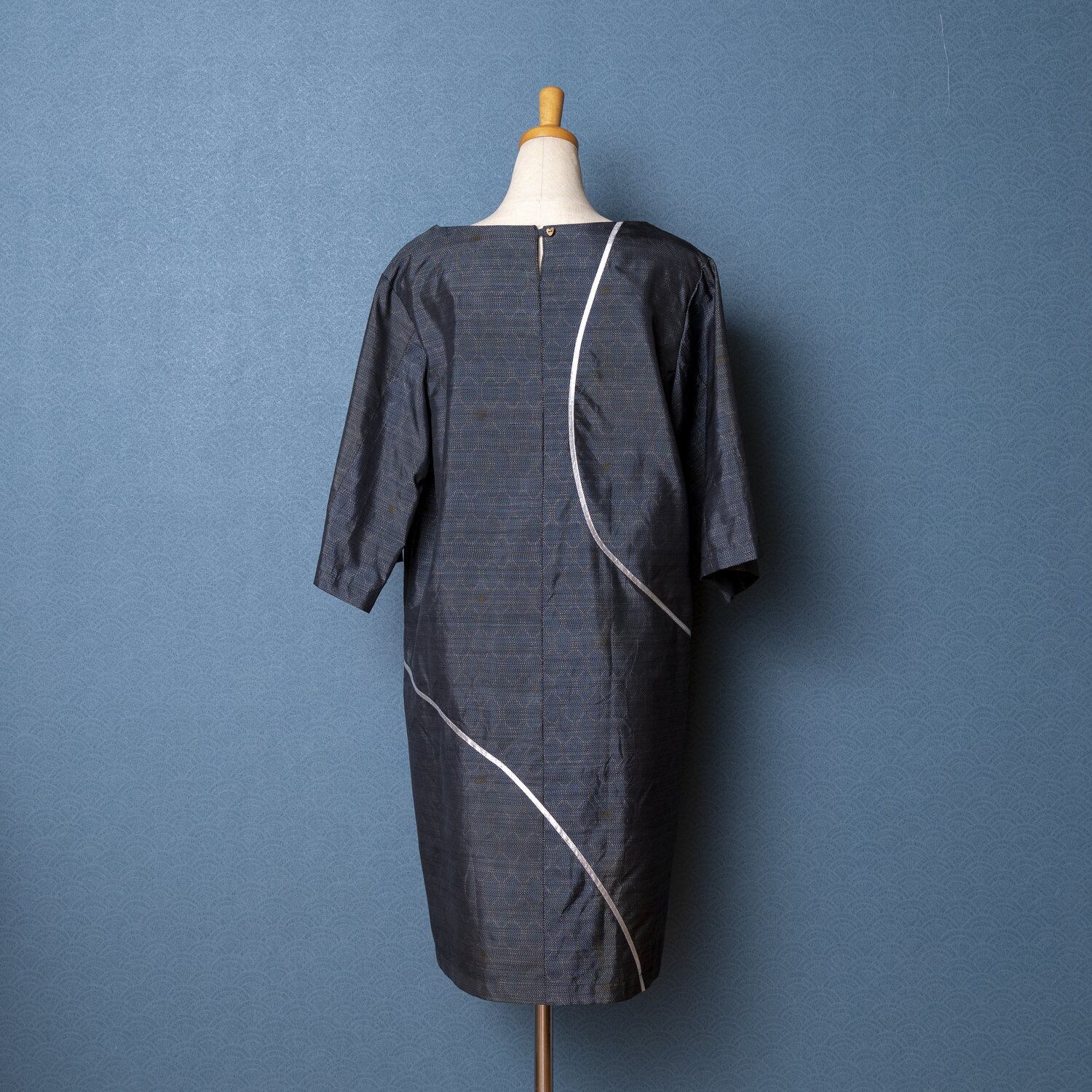 A silver ribbon sewn onto Oshima Tsumugi accentuates, the fabric.